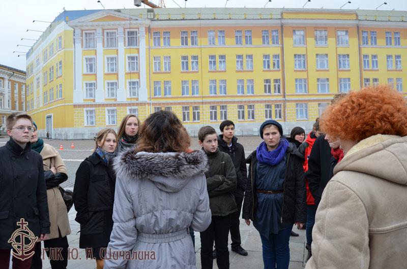 Entrance to the Kremlin by Troitskaya Tower and our group